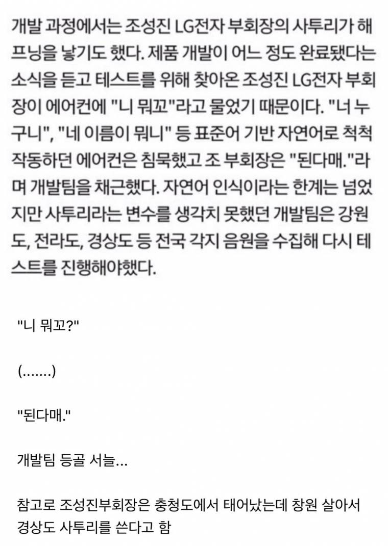 LG의 미진한 접근성에 대한 비판이 실린 서울신문 칼럼입니다. https://www.seoul.co.kr/news/newsView.php?id=20210309027001&fbclid=IwAR1--egmQmg76OiIXj3csF3a7IDuqcy-vNNWdO04tu8GHU_7gAZ88noWZ8Q 그레코는 LG 세탁기가 스마트폰 앱으로 조작할 수 있다는 말을 듣고 구입을 결정했다고 한다.. 하지만 정작 스마트폰에 앱을 설치하고 조작하려 했더니 세탁기의 전원을 먼저 켠 후에 특정 버튼을 눌러야 가능하다는 사실을 알고 크게 실망했다. 앞서 설명한 것처럼 어느 버튼을 눌러야 하는지 알 방법이 없기 때문이다. 이 영상이 올라가자 많은 사람이 댓글을 달고 그레코에게 메시지를 보냈다고 한다. "그럼 아날로그 버튼이 달린 구형 세탁기를 사는 게 낫지 않으냐?" 그레코는 두 번째 영상에서 이렇게 답한다. "LG 세탁기는 사용자 평이 좋았다. 기능이 좋고 세탁을 잘한다고 해서 샀다. 시각장애인은 좋은 제품을 사면 안 되나? 우리는 2등 시민인가?" ..더 중요한 것은 ‘디지털 기술이기 때문에 어쩔 수 없이 장애인에게 불편한 것’이라는 인식이다. 그렇지 않다. 앞서 말한 무한 다이얼이나 매끈한 스크린에 붙은 버튼은 디지털 기술이지만 장애인을 고려하지 않고 설계됐기 때문에 불편할 뿐이다. 디지털 터치 스크린을 한 번 생각해 보자. 터치 스크린은 거의 예외 없이 소프트 키라는 기술을 사용한다. 소프트 키는 하나 이상의 기능을 수행하는 버튼을 말한다. 가령 현금입출금기의 화면 속 버튼들은 같은 위치에 있는 버튼이라도 메뉴가 변하면서 다른 기능을 수행할 수 있다. 따라서 눈으로 확인하지 않으면 내가 누르는 버튼이 무슨 기능을 수행하는지 알 수 없다. 따라서 이런 기술은 시각 장애인에게는 재앙일 수 있다. 특히 물리적인 버튼이 거의 사라지다시피 한 스마트폰은 화면 속의 모든 버튼이 소프트 키인 셈이다. 하지만 앞서 말한 것처럼 스마트폰은 이제는 장애인들에게 없어서는 안 될 중요한 도구가 됐다. 이걸 가능하게 한 것은 스마트폰의 인터페이스를 설계하면서 장애인들의 접근성accessibility을 연구하고 설계, 반영한 애플이나 구글 같은 기업이 있었기 때문이다. 스마트폰처럼 장애인의 접근이 힘들어 보이는 디지털 제품은 기업들의 노력으로 접근이 가능해진 반면 세탁기처럼 접근성에 별 문제가 없어 보이는 제품은 디지털화되면서 오히려 장애인들이 넘을 수 없는 문턱이 만들어진 것이다. 그 바람에 그레코는 스마트폰을 이용해 세탁기를 조작하려고 했지만 LG는 그것조차 힘들게 만들었다. 결국 장애인들에게 장벽이 되는 것은 디지털이라는 기술 자체가 아니라 ‘기업의 무관심’이다. ..이건 LG만의 문제가 아니다. 한국 기업들은 장애인 접근성의 문제에 전반적으로 둔감하다. 예전 같으면 눈에 띄지 않았을 문제가 근래 들어 이렇게 부각되는 이유는 국내 기업들이 세계적인 기업으로 성장했기 때문이다. LG나 삼성 같은 기업의 가전제품은 이제 미국 내 전자제품 매장에서 가장 뛰어난 성능을 가진 최고가의 제품으로 팔리고 있다. 이름 없는 브랜드의 싸구려 제품이었다면 무시하고 말았을지 모르지만 최고의 제품이 되니 접근성의 문제가 눈에 띄기 시작한 거다. 한국 기업들이 이렇듯 세계시장에서 잘나가고 있지만 여전히 해결하지 못하는 문제가 조직의 다양성이다. 생각해 보라. 이 세탁기의 개발 과정에서 조직 내에 장애를 가진 직원이 있었으면 이 문제가 발견되지 않았을까? 내가 사용하는 전기밥솥은 중소기업 제품이지만 메뉴가 바뀔 때마다 ‘백미’, ‘현미’, ‘취사를 시작합니다’ 같은 메뉴를 일일이 말로 해 준다. LG 같은 세계적인 기업이 그 정도의 기능을 넣을 능력이 없을까? 얼마든지 해결할 능력이 있지만 그들 눈에 보이지 않았을 뿐이다. "안녕하세요. 제 이름은 루시 그레코입니다. 저는 접근성 전문가입니다.. 저는 LG 세탁기 옆에 있는 제 세탁실에 서 있습니다. 그야말로 접근불가품입니다. 방금 이 기계를 샀는데 정말 실망했어요. 앱이 있는데 버튼을 누르기 전까지는 앱이 기계를 작동시킬 수 없습니다. 이제 여러분께 보여드릴게요. 제가 기계를 켰으니까 이제 다이얼 메뉴에서 무언가를 고르면 되는데, 정작 제가 지금 고르고 있는 메뉴에 어떤 항목이 있는지 알 수 없습니다. 아니면 여기 있는 버튼들을 누를 수도 있겠지만, 여러분도 알 수 있듯이 저는 버튼이 어디에 있는지조차 알 수가 없네요. 제가 버튼 위를 누르는 건지 아닌지, 제가 방금 선택한 설정이 무엇인지, 전혀 알 수가 없습니다. 그래서 저는 앱이 이것을 할 수 있지 않을까 했습니다만 그렇지 못하고요. 앱으로 그렇게 하려면, 저는 이 버튼들 중 하나를 찾아서 3초 동안 누르고 있어야 합니다.." 9