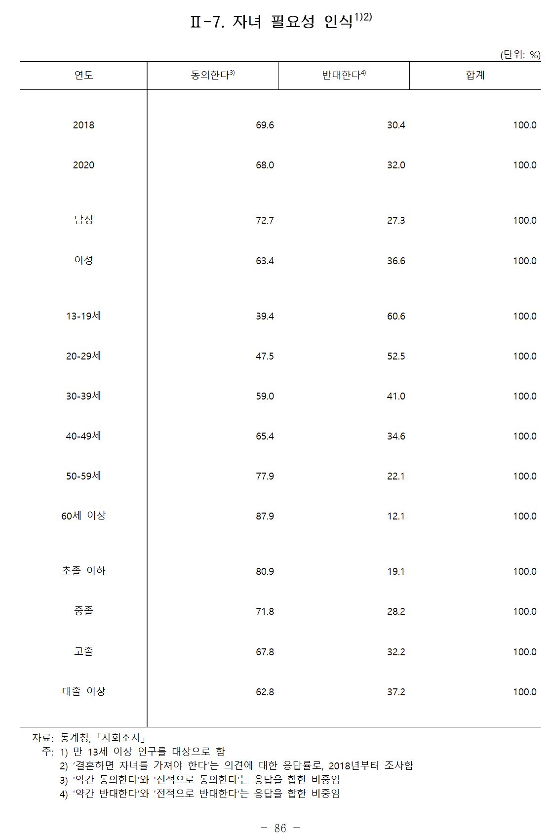 그래도 결혼해야 한다거나 자녀 가져야 한다는 사람이 여전히 많은 것도 같습니다. 변화가 어떻게 보면 빠르지만, 어떻게 보면 그렇게 급속한 변화는 쉽지 않은 것 같기도. 결혼해야 한다가 '반드시 해야 한다'와 '하는 게 좋다'를 합한 것이기는 합니다만, 오히려 반등했네요.