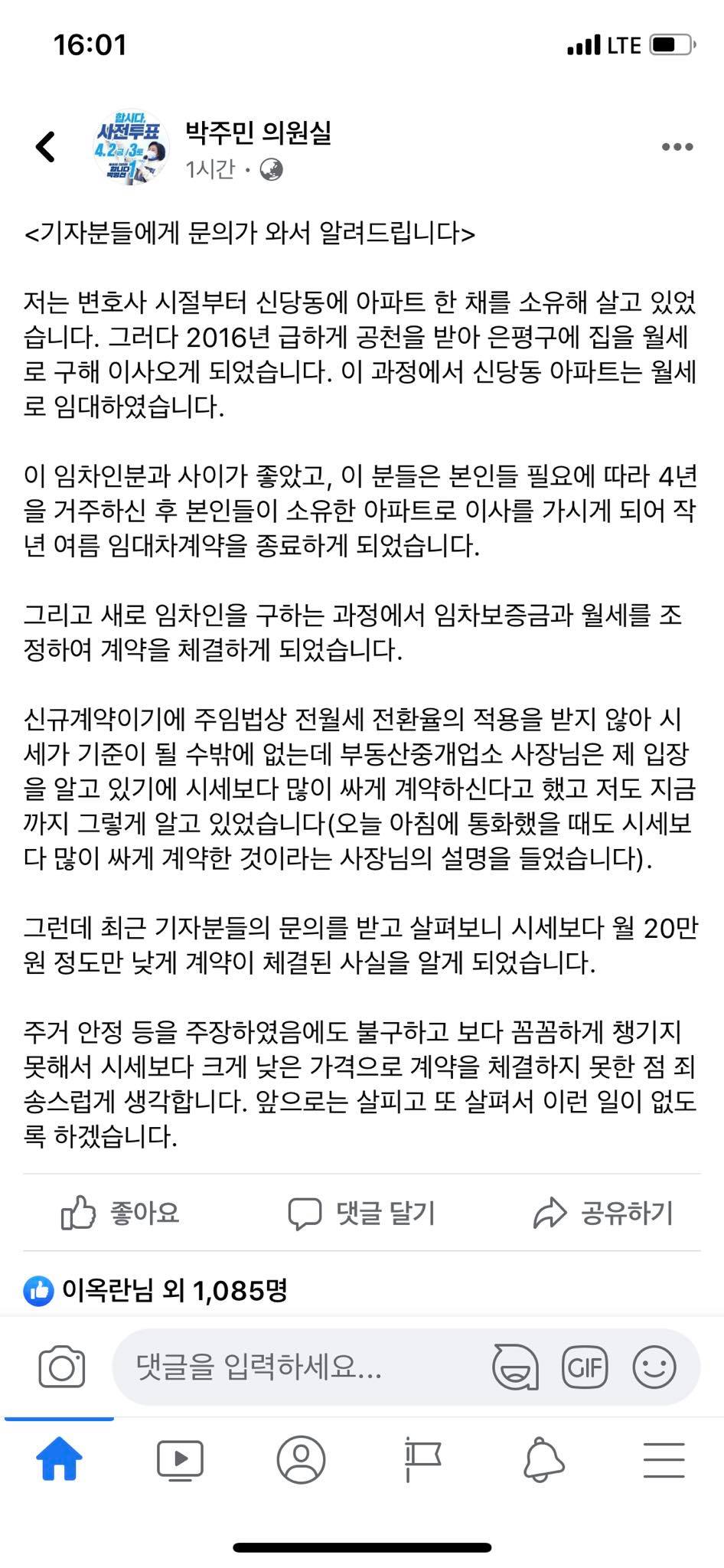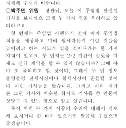 박주민 의원에게 제기된 비판은, 주택임대차보호법 개정안을 발의해서 전월세상한제에 앞장 선 의원이 정작 본인은 법 통과 전 대폭 임대료를 올렸으니 적반하장 아니냐는 것이다. (신규 계약이니 엄밀히 말하면 법에 위반되지는 않지만 법의 취지에는 어긋난다는 의미) 기자들도 이런 의미의 질문을 했을 것이다.