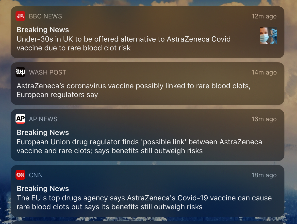 AZ백신의 본고장(?) 영국에서는 30세 아래는 다른 백신 접종한다는군요. 나이가 여기 해당되는 경우도, 1차 접종을 이미 한 경우는 부작용이 발생한 경우가 아니면, 2차까지 AZ백신을 맞게 한다고 합니다.