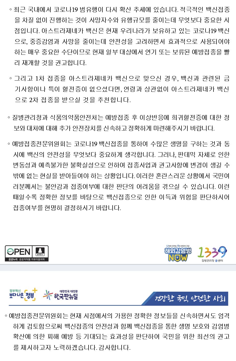 문제는 국내 언론에서 AZ가 화이자보다 압도적으로 위험하다고 기사를 내는데, AZ가 접종이 중단된 것은 임상에서 발견되지 않았던 이상사례가 PMS에서 발견됨 + EU와 영국의 정치적인 분쟁 등의 이유입니다. 단순 안전성 때문이라면 EMA에서 "그럼에도 접종이 중단되어서는 안된다." 는 식으로 뒷구멍을 열어놓지 않았겠죠.
