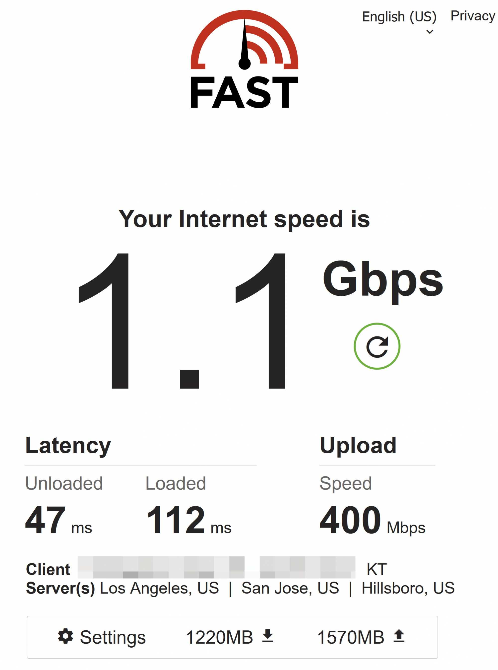 http://www.mediatoday.co.kr/news/articleView.html?idxno=213078 https://m.yna.co.kr/view/AKR20210423114200017 지금 측정해보니, KT인터넷 두 배 빨라졌는데요? 띠용? (두세 달에 한 번씩은 측정하는 편입니다. 넷플릭스의 fast.com은 원래 결과 변화폭이 좀 있기는 합니다만, 이 정도로 빨라진 것은 처음인 것 같군요.) 0