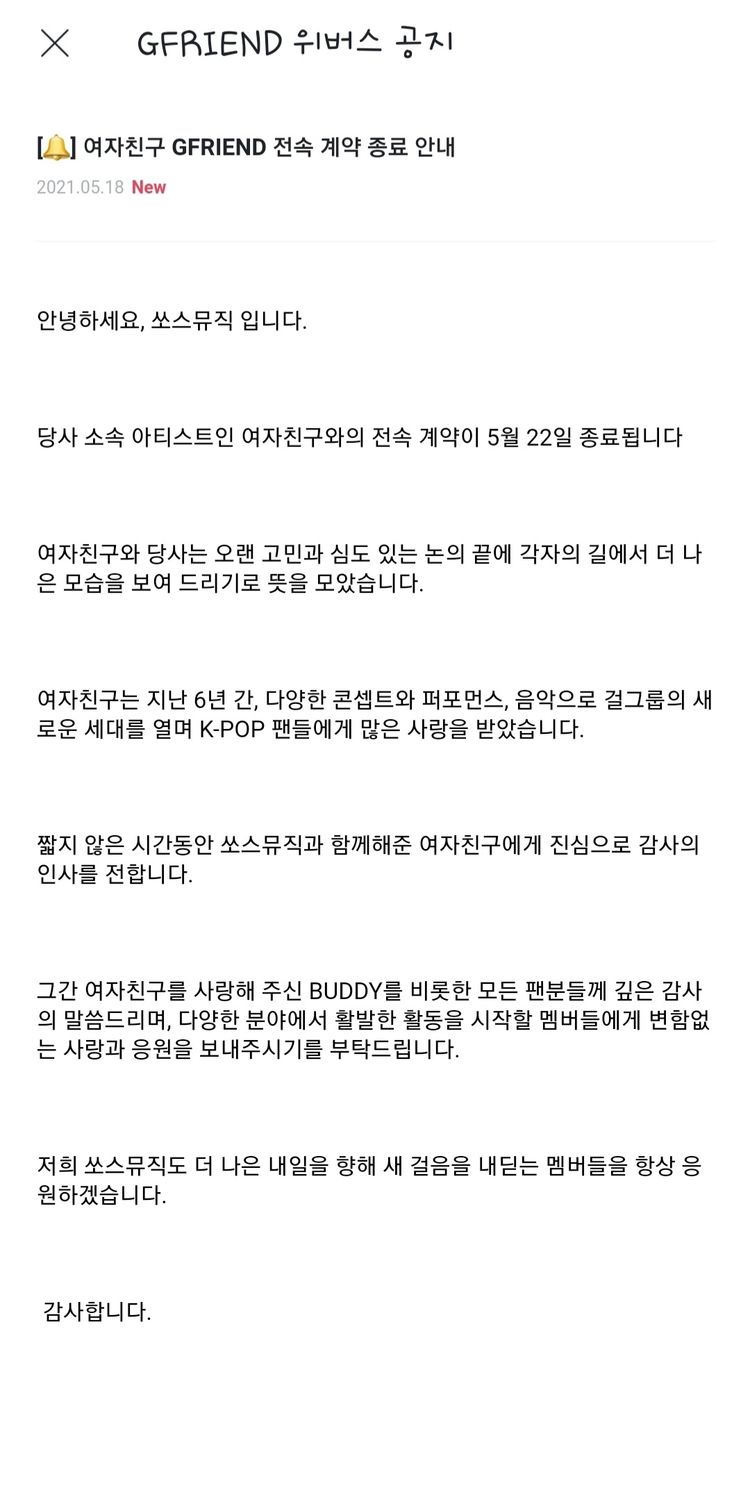 걸그룹 여자친구가 해체하는군요.