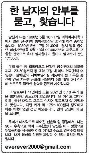| Subject | 신문광고로 41년 만에 연락 닿은 두 사람…그 때 무슨 일이? |