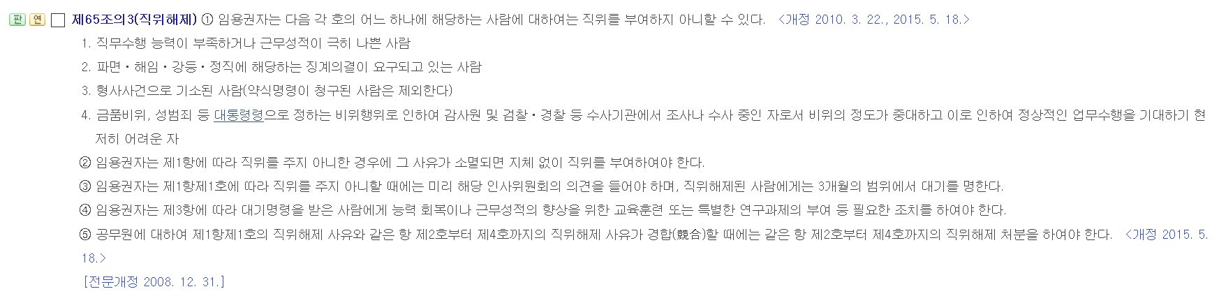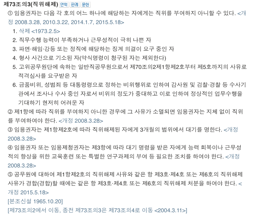 https://m.yna.co.kr/view/AKR20210521131700065 비위에 의한 것이면 징계절차로 넘어가는 것으로 아는데, 이런 경우는 봉급 80%가 나오는 상황에서 본인이 사표를 안 내면, 어떻게 되는거죠? 이런 경우도 3개월 대기 후에는 다른 직위로 발령이 나려나요? 위는 공무원법인데, 지방공무원법도 직위해제 관련해서 거의 같은 것으로 압니다. 0