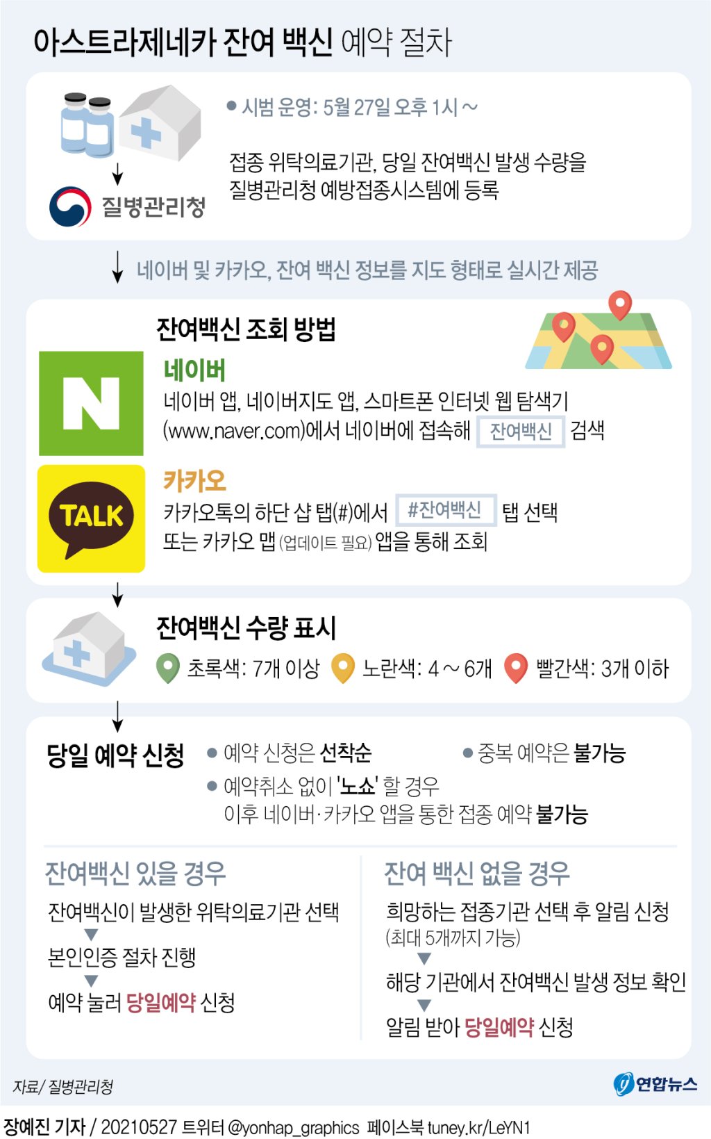 | Subject | 네이버-카카오앱서 '잔여 AZ백신' 선착순 예약…중복예약은 불가(종합) |