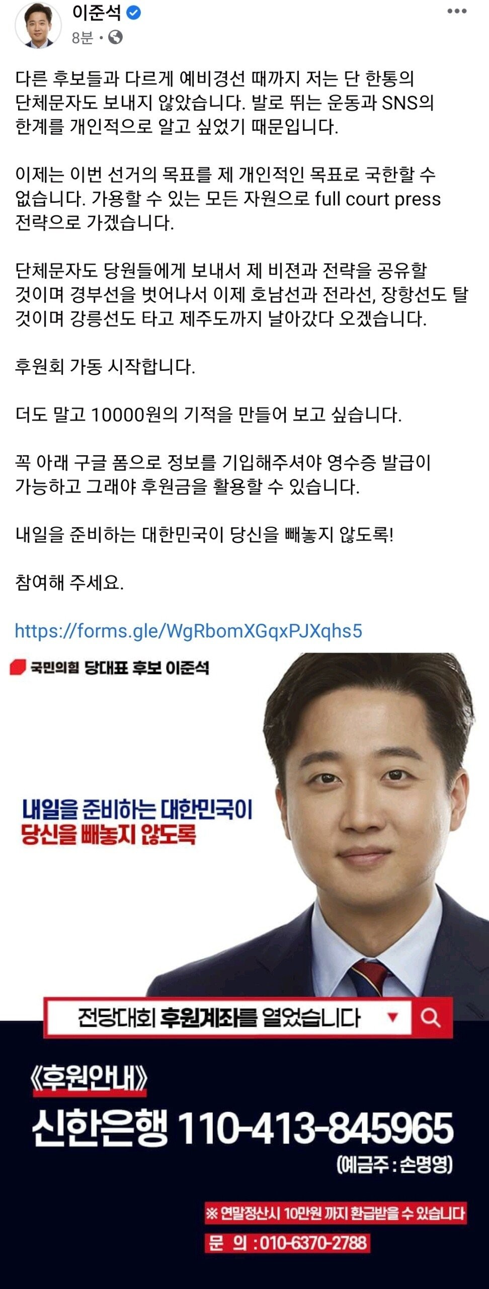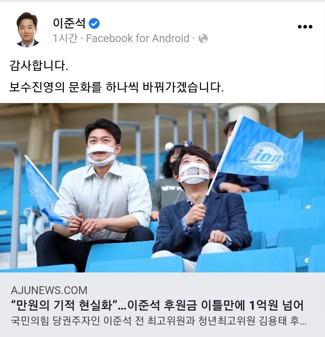 저도 개인적으로 소액이나마 후원하였고, 이준석이 성공적으로 경선을 치르길 바라고 있습니다.