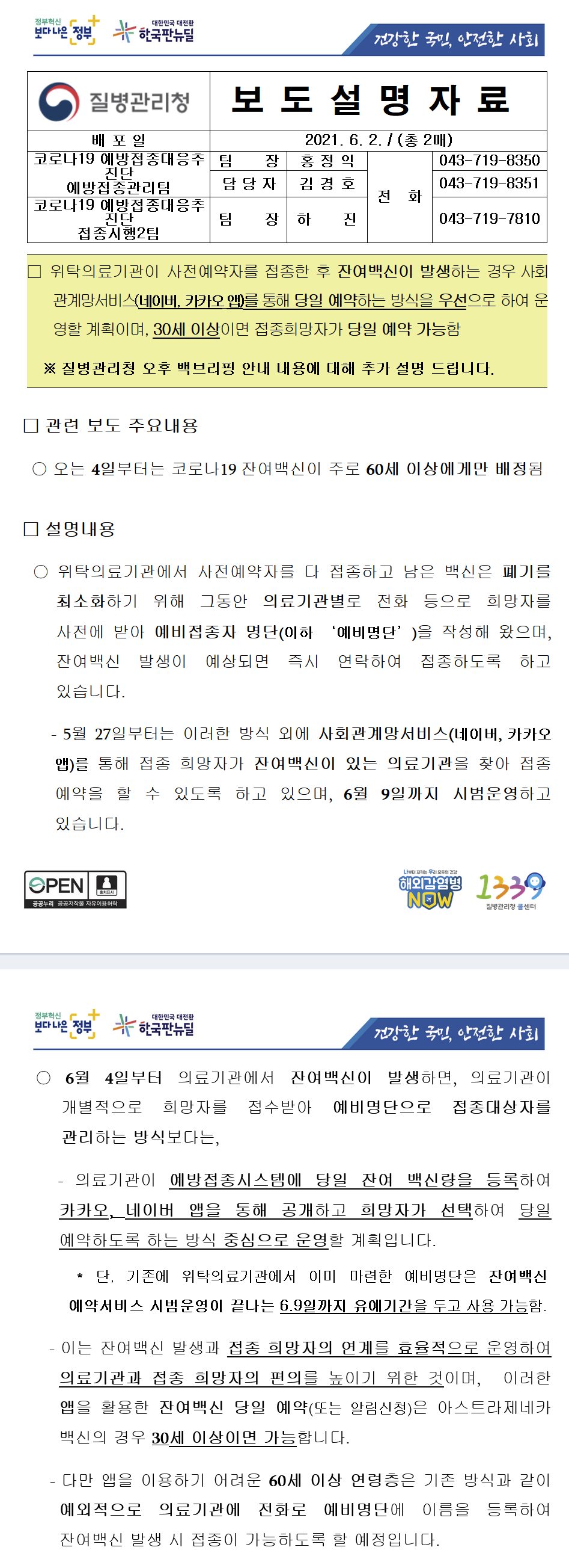 Subject   모레부터 AZ 잔여백신 60세이상에 우선 접종..얀센도 고령층부터