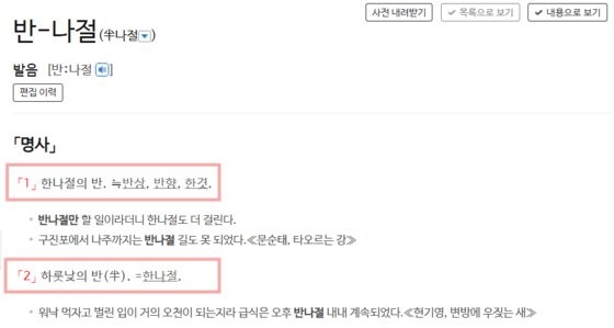 처음 보고 우왕 이거 깔아주는 문제네 개꿀 이랬는데 1번 반나절에 국어원 2항 용법이 있는 줄 몰랐네요.