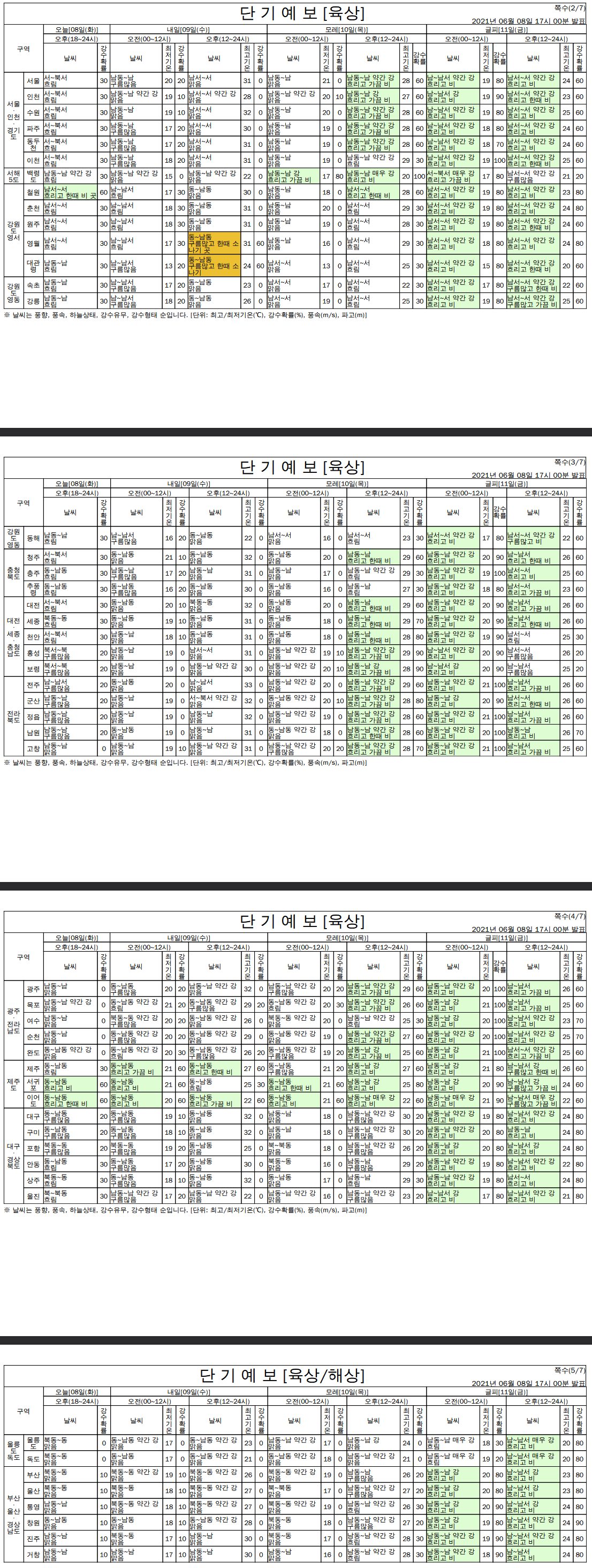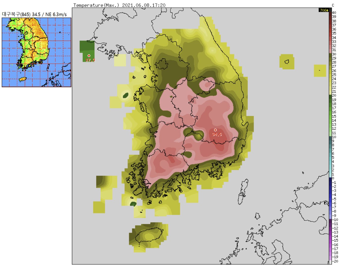 https://www.yna.co.kr/view/AKR20210608141000530 https://www.weather.go.kr/w/repositary/xml/fct/rpt_wid_day_202106081700_108.pdf 대구는 오늘 34.5도 찍은 곳도 있군요. 여름이었다. 오늘과 내일은 지역에 따라 대기 불안정으로 인한 소나기 정도지만, 목요일 오후부터 금요일까지는 비 오는 곳들이 많을 것 같습니다. 세차는 또 미룰 수 있겠습니다? 0