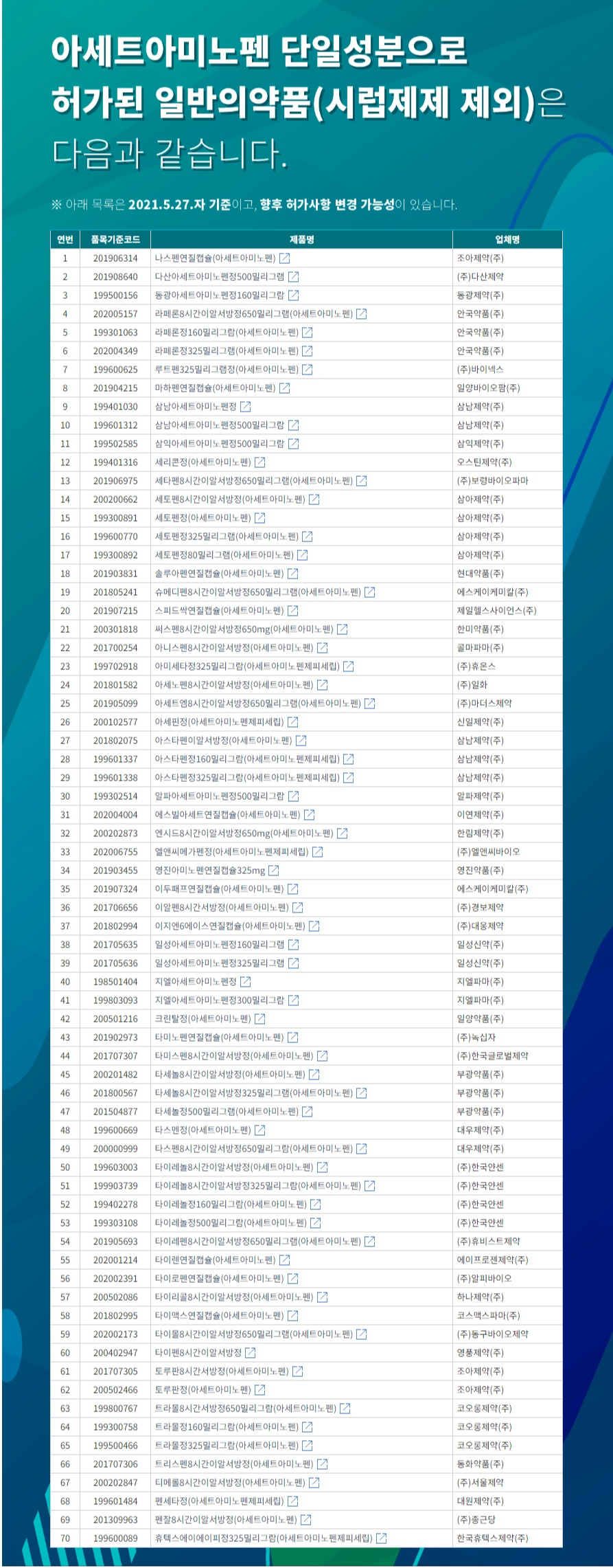 "타이레놀만 찾지 마세요" 대체 가능한 제품 70개