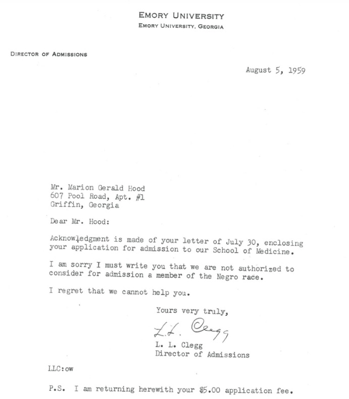 62년만에 에모리 의대에서 사과를 했는데, 당사자는 사무실에 걸어두고 평생 잊지 않았다고 하네요.