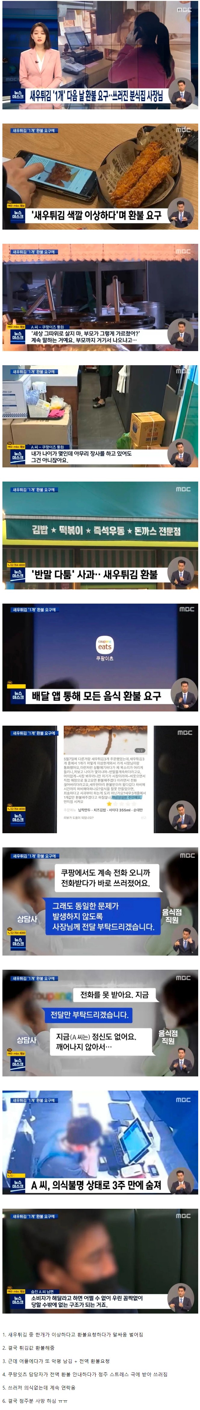 | Subject | 새우튀김 '1개' 다음 날 환불 요구…쓰러진 분식집 사장님 |
