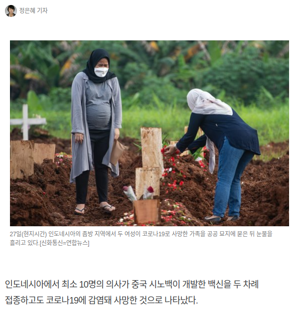 | Subject | 백신 맞고도 숨진 인니 의사 10명…중국 시노백이었다 |