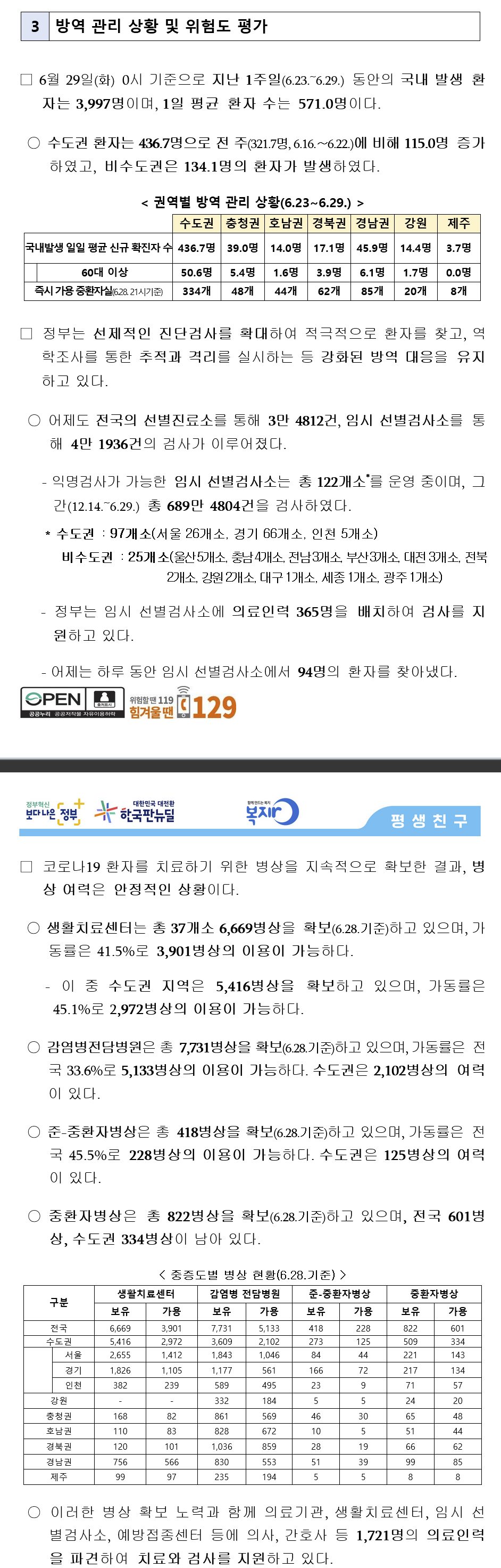 코로나19 국내 발생 및 예방접종 현황(6.29., 0시 기준)
