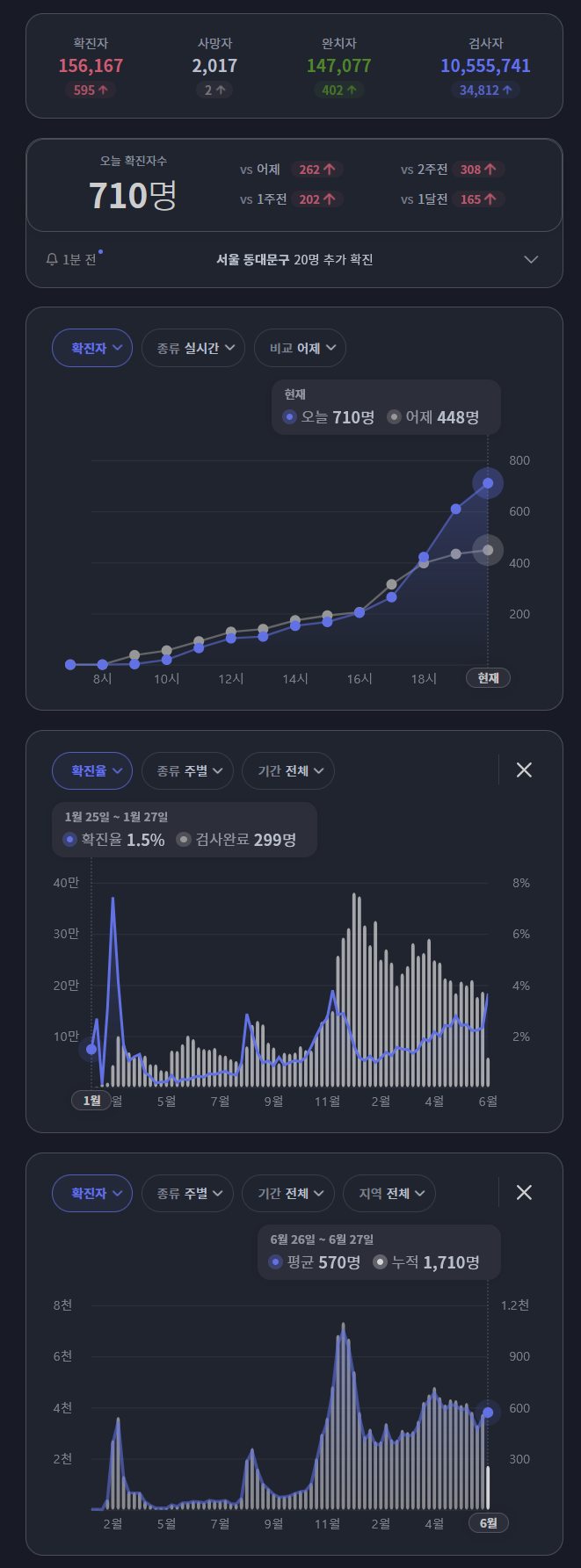 백신도 맞고 있는데 이제 슬슬 확진자수보다 중증환자수 쪽으로 봐야하지 않을까 싶어요. 확진자 수만 보면 백신맞아봐야 소용없다 이런 얘기나 나오고 언제 끝나나 하는 생각에 힘만 들텐데...