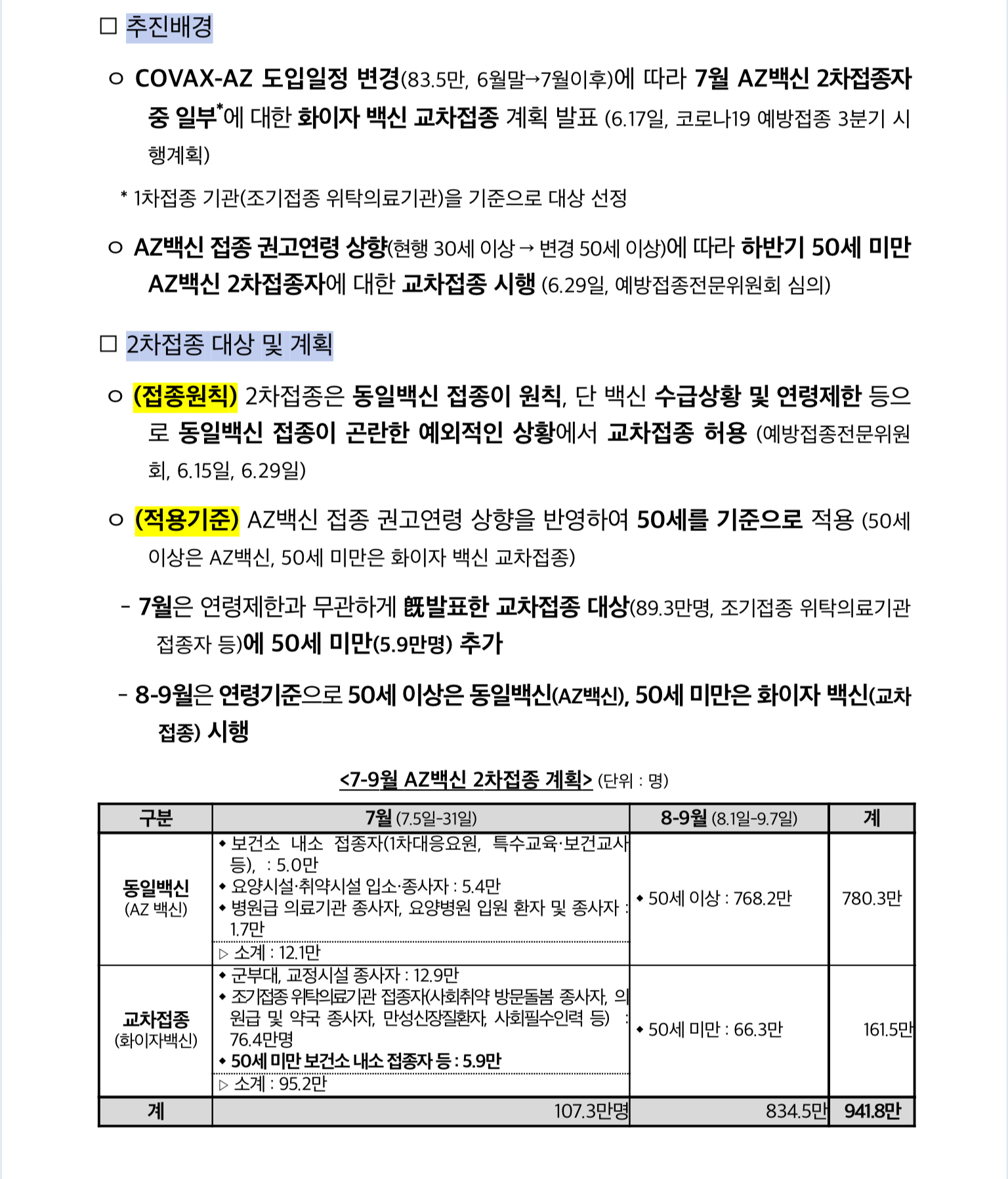 Subject   AZ백신 접종연령 50세 이상으로 상향…50세 미만 2차접종 화이자로(종합)
