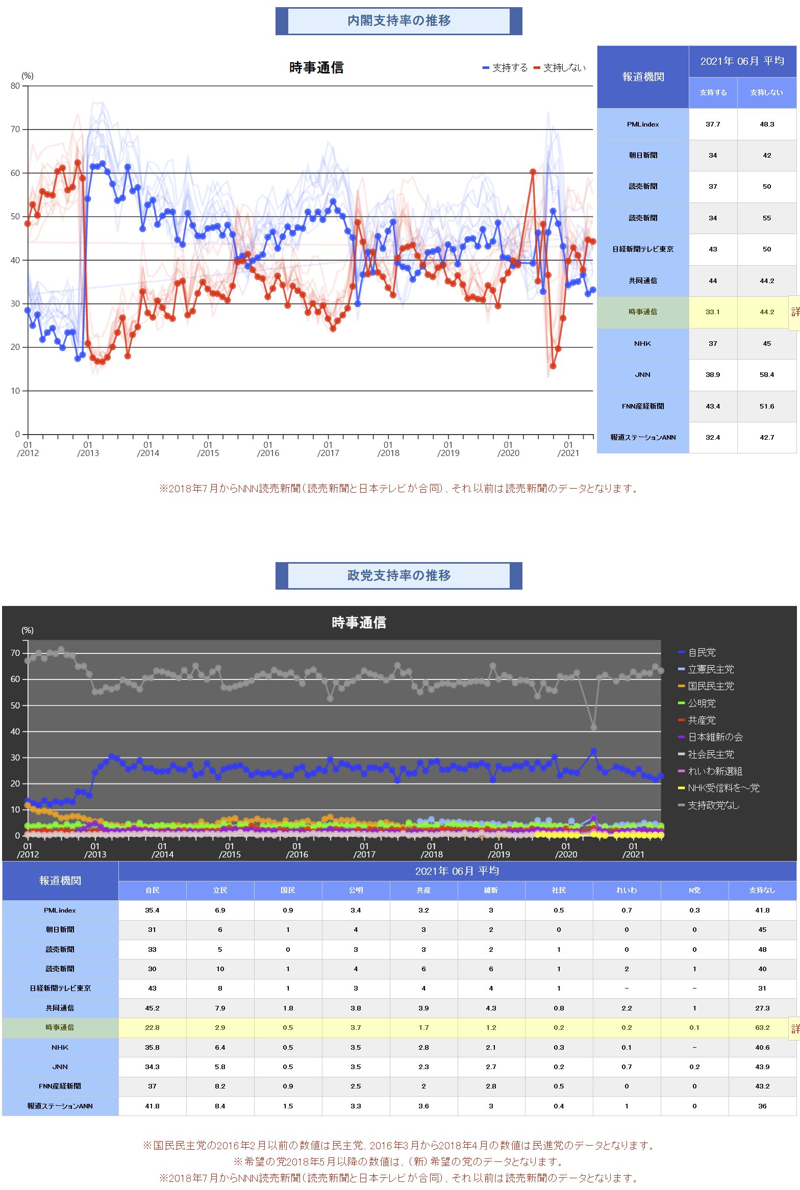 위 뉴스에 나오는 지지통신의 가장 최근 조사는 포함되어 있지 않습니다만, 참고하세요. 6월 지지통신 조사는 33.1%였습니다.