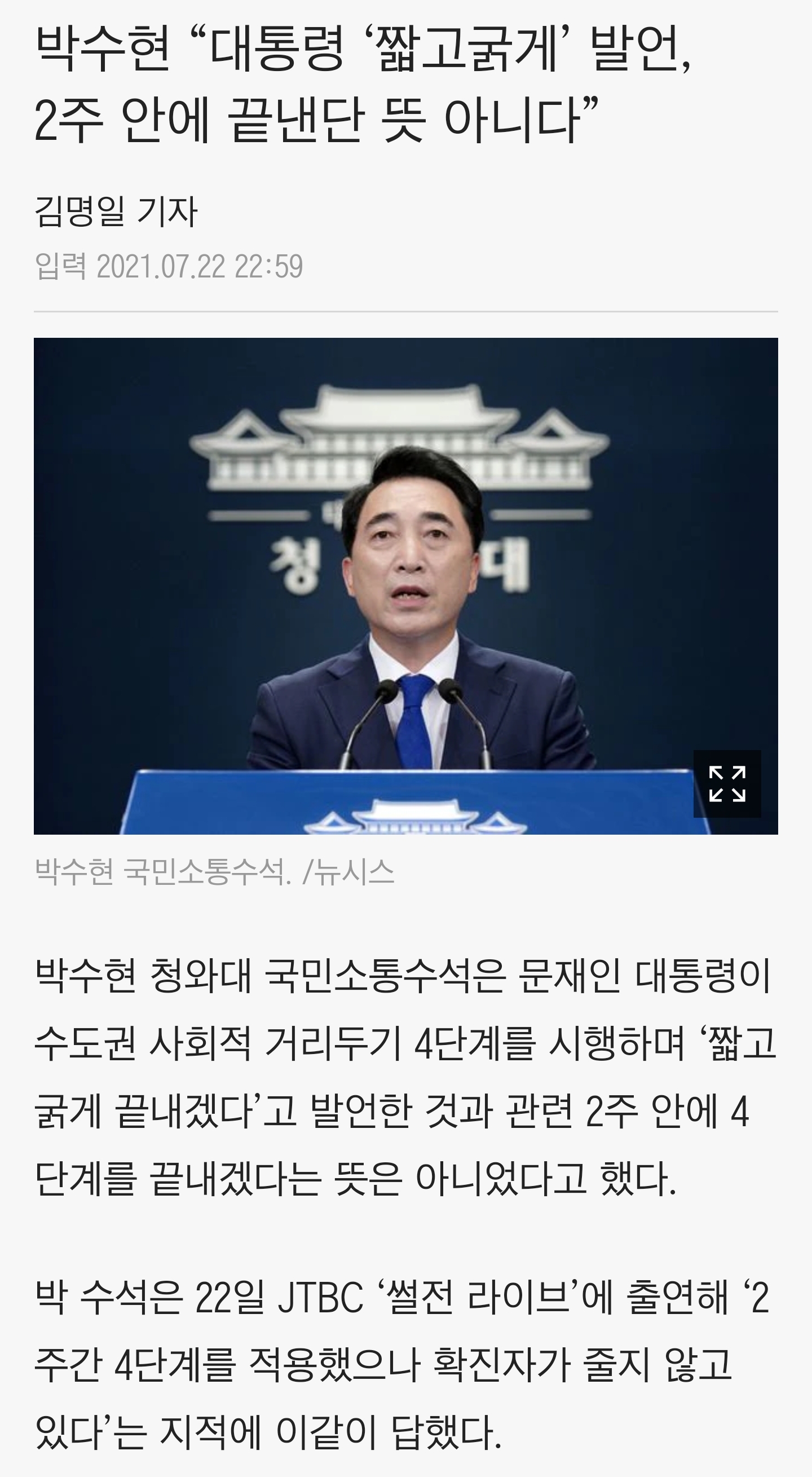 | Subject | 박수현 "文 '짧고 굵은 4단계'는 2주 안에 끝낸다는 뜻 아냐 |