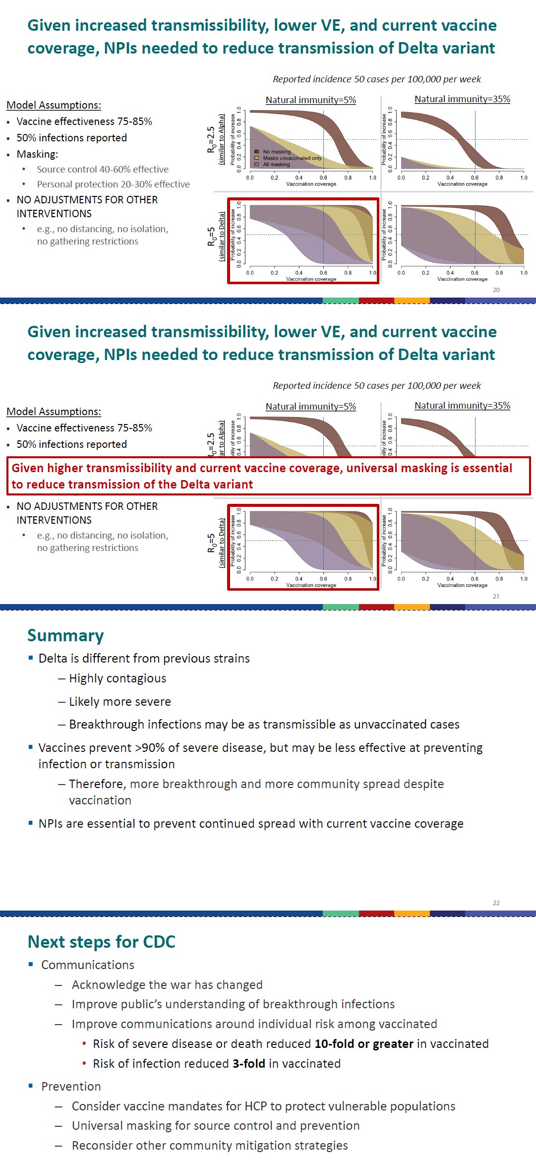 https://www.yna.co.kr/view/AKR20210730116500009 *아래는 나중에 나온 다른 외신을 옮긴 기사입니다. https://m.yna.co.kr/view/AKR20210731001700075 https://m.yna.co.kr/view/AKR20210731042000009 ‘The war has changed’: Internal CDC document urges new messaging, warns delta infections likely more severe The internal presentation shows that the agency thinks it is struggling to communicate on vaccine efficacy amid increased breakthrough infections https://www.washingtonpost.com/health/2021/07/29/cdc-mask-guidance/ CDC Scaled Back Hunt for Breakthrough Cases Just as the Delta Variant Grew Bloomberg identified more than 100,000 vaccine breakthroughs https://www.bloomberg.com/news/articles/2021-07-30/cdc-scaled-back-hunt-for-breakthrough-cases-just-as-the-delta-variant-grew 미국이 최근 방역조치를 다시 되돌리는 것과 백신 의무접종을 빠르게 진행하기 시작한 것과 관련한 배경입니다. 백신이 중요하고, 맞아야 하지만, 백신은 감염이나 전파의 완전한 예방이 아니라 감염 시 중증과 사망으로 가는 최악의 상황을 높은 확률로 막아주는 것이라는 강조가 많았었죠. 델타로 위험도는 코로나19 초기보다 높아졌지만, 시간이 흘러 세계적으로 경각심은 낮아진 상황인데, 진정이 언제 될지. 백신 맞았어도, 실내에서 마스크 착용을 잘하고, 손 잘 씻고, 환기를 잘해야겠습니다. https://youtu.be/BaKtsmL8AbA 중국도 다시 웨이브가 시작될지도 모르겠군요. https://www.yna.co.kr/view/AKR20210730058451097 Nanjing airport coronavirus cluster ‘spreads to 15 other Chinese cities’ China’s zero-tolerance approach to pandemic tested with at least 200 people infected by this particular outbreak Officials told to ‘learn lessons’ and ‘remain vigilant’ as number of infections is expected to increase https://www.scmp.com/news/china/science/article/3143071/nanjing-airport-coronavirus-cluster-spreads-15-other-chinese 0