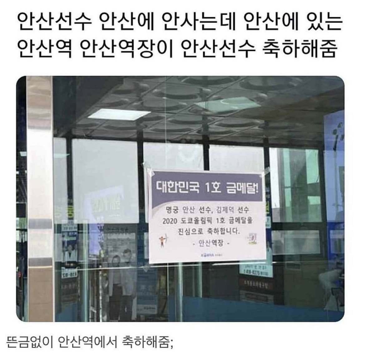 안산선수 안산에 안사는데 안산에 있는 안산역 안산역장님이 안산선수 축하하줌.