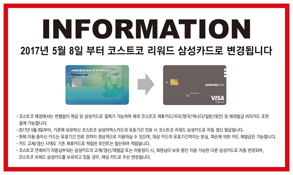 Subject   2017년 5월 8일, 코스트코 삼성아멕스카드가 코스트코 리워드 삼성카드로 변경