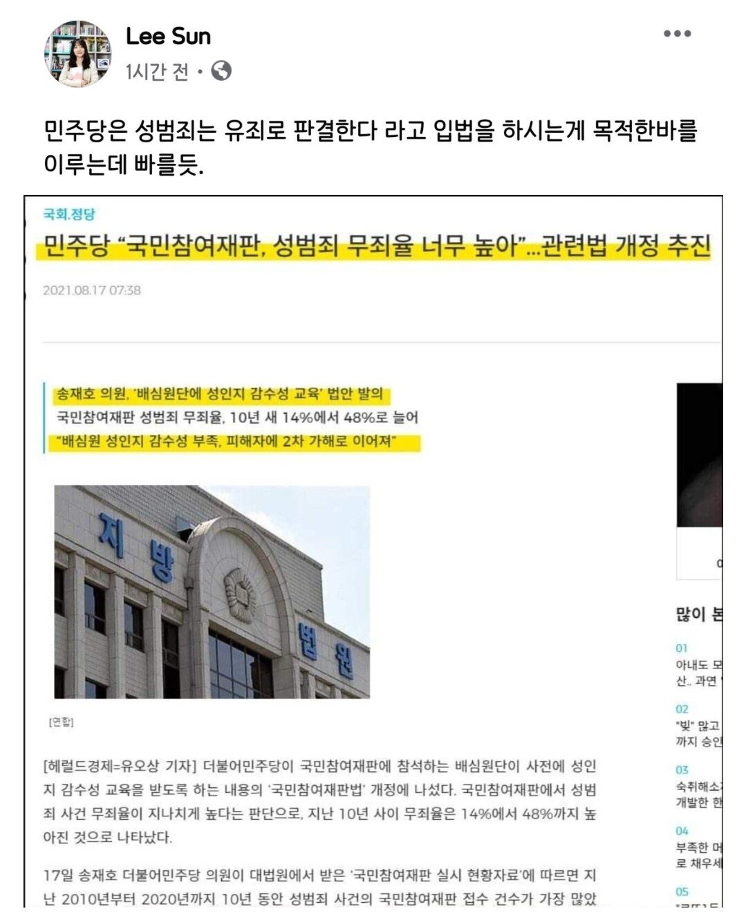 | Subject | 민주당 “국민참여재판, 성범죄 무죄율 너무 높아”…관련법 개정 추진 |