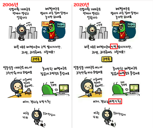 https://www.hankyung.com/economy/article/202109143001Y 돈있는 사람은 서울러, 지방러할 것 없이 무조건 서울 매수. 서울에서 밀려난 사람들은 경기도 매수. 이미 다주택 포지션인 사람들은 지방 매수. 요렇게 가나보네요.. 요새 세상엔 정말 정보 공유가 빨라서 사람들 다 어디가 좋은지 금방 알고 돈도 그만큼 빨리 몰리고.. 0