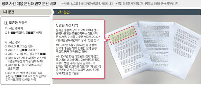 https://news.v.daum.net/v/20210929060332243 윤석열 검찰총장 재직 시절인 지난해 3월, 대검찰청이 윤 총장 장모인 최모(74)씨의 잔고증명서 위조 사건에 대해 ‘최씨는 무죄’라는 논리와 근거, 변호사 변론 요지 등을 종합한 이른바 ‘총장 장모 변호 문건’을 생산한 것으로 드러났다. 총장 가족의 개인적 사건에 대검 조직이 부적절하게 동원돼 변호 활동을 한 것 아니냐는 논란이 불가피할 전망이다. 28일 세계일보 취재를 종합하면 대검은 당시 최씨와 관련한 4가지 의혹 중 하나인 ‘도촌동 부동산’ 사건에 대한 A4 용지 3쪽 분량의 문건을 작성했다. 이번 문건은 최씨의 4가지 범죄 의혹에 대한 사실관계를 정리한 이른바 ‘총장 장모 대응 문건’(1차 문건)과 별개다. 검찰 내부 문서양식을 활용한 1차 문건이 대내용이라면, 일반 문서 양식으로 쉽게 풀어 쓴 2차 문건은 대외용으로 추정된다. 도촌동 부동산 사건은 최씨가 2013년 경기 성남의 도촌동 땅 16만평 개발사업에 관여하고, 허위로 347억원대 은행 잔고증명서를 만들어 차익 50억원을 챙긴 것으로 알려져 논란이 됐다. 檢 내부정보 활용해 법리 검토.. '수사 불가' 논리까지 담아 https://news.v.daum.net/v/20210929060407263 '윤석열 장모 변호 문건' 내용은 수사팀만 아는 세세한 판단 담겨 '피고인' 안모씨 '전문사기범' 격하 장모 최씨 측 입장 압축.. 상대 반박 직접 자본시장 업계 자문도 구한듯 최 씨 변호인 측 "檢 접촉 없었다" 외압 여부 등 의혹 규명 목소리 윤석열 검찰총장 재직 시절 대검찰청이 생산한 ‘총장 장모 변호 문건’은 앞서 의혹이 제기된 ‘총장 장모 대응 문건’보다 논리와 근거가 강화됐다. 장모 최모(74)씨의 340억원대 ‘잔액증명서 위조 사건’에 관한 문건인데, 법리 검토는 물론이고 수사를 해선 안 되는 논리까지 담겼다. 앞서 총장 장모 대응 문건 보도에 이어 2차로 총장 장모 변호 문건을 세계일보가 또 단독보도했네요. 검찰총장 장모의 일에 대검이 부적절하게 관여한 것으로 보입니다. 2