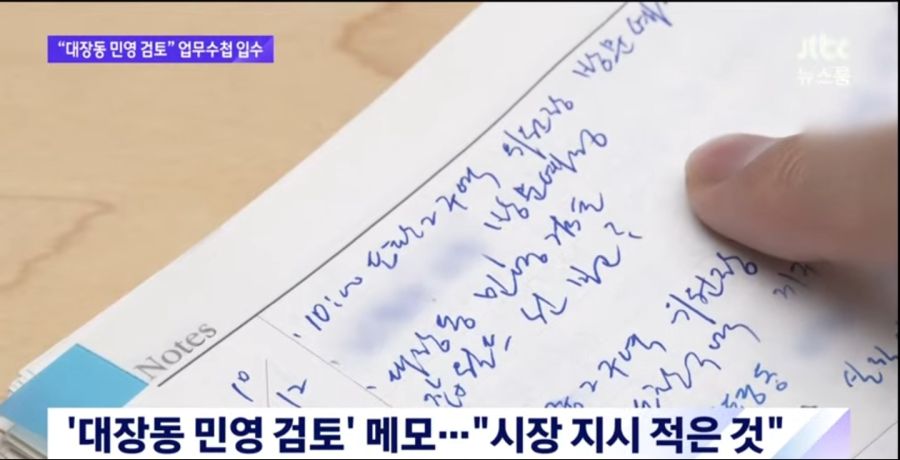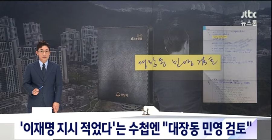 | Subject | 성남 간부 수첩에 '대장동 민영 검토'…"이재명 지시 적은 것" |