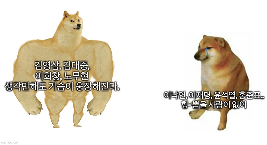 "뽑을 사람이 없어요"..유권자들 "대선 후보들 전부 비호감" https://news.v.daum.net/v/20211009000109489?x_trkm=t 뭐랄까... 참... 저는 민주당을 좋아하는 사람이고, (재명찡이 본선에 나온다는 전제하에는) 어쨌든 이재명을 찍긴 찍을것 같습니다만 와 이렇게까지 찍어줘야하나 하는 묘한 자괴감도 동시에 들고있읍...... 근데 수치상으로만 본다면 반대편에서 윤을 지지하시는 분들도 비슷한 느낌을 갖고계신건가...... 이번 선거는 뭔가 좀... 거시기하군요. 1