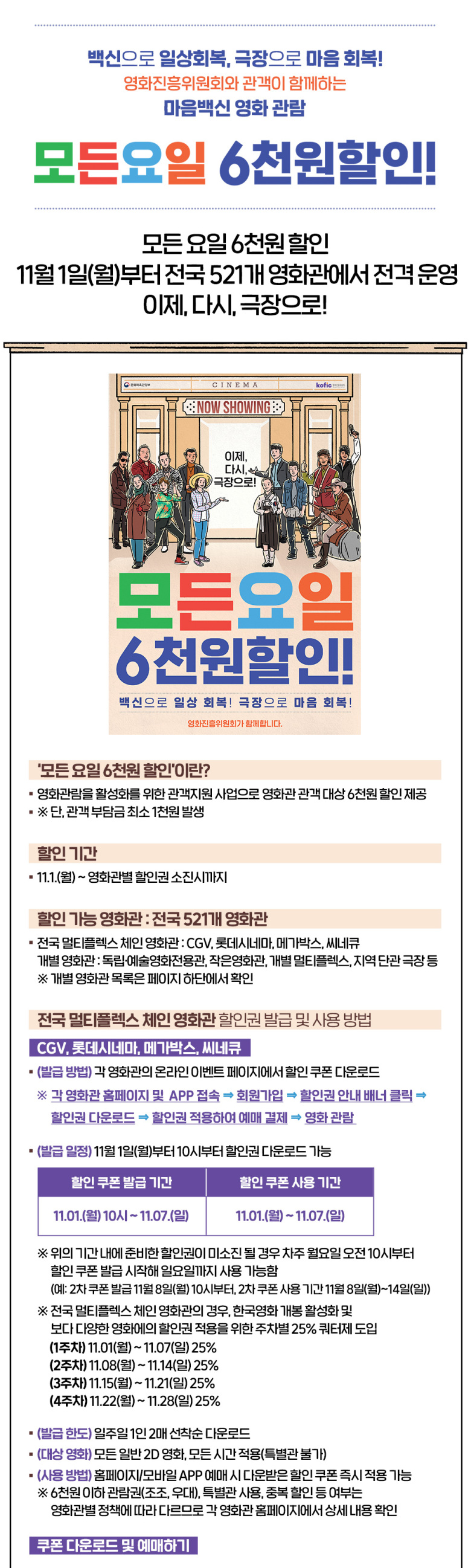 영화관 6천원 할인권 배포…"위드코로나 시작"