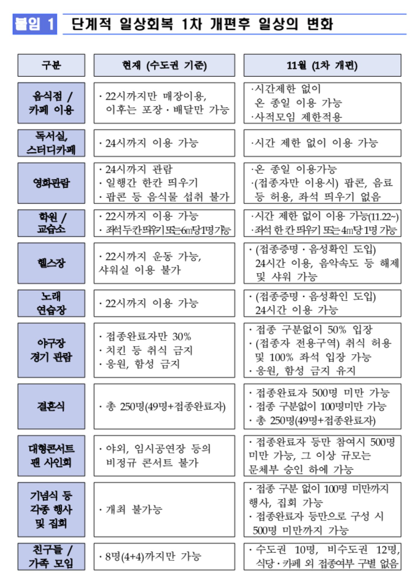 | Subject | 내달 1일부터 일상회복…사적모임 10∼12명까지·24시간 영업(종합3보) |