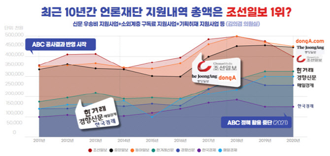 10년간 정부지원금 1위는 조선일보…조중동 32.0% 차지