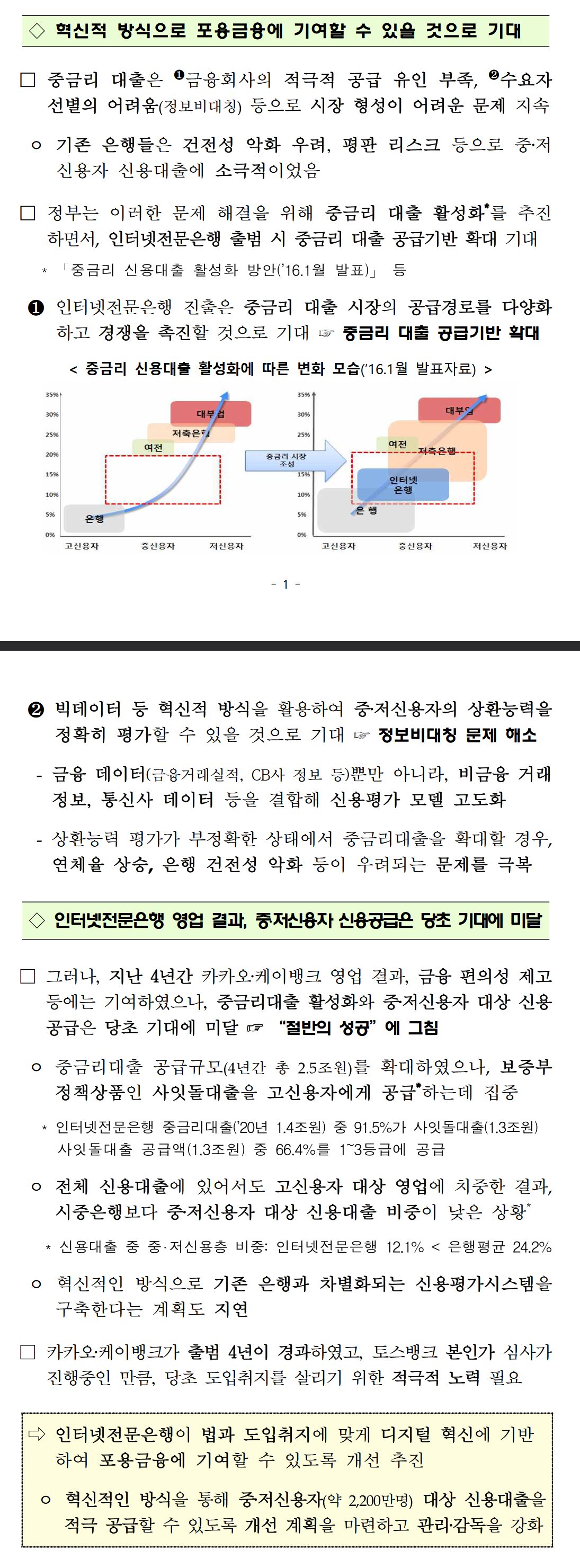 (금융위원회 보도자료)인터넷전문은행 중/저신용자 대출 확대계획