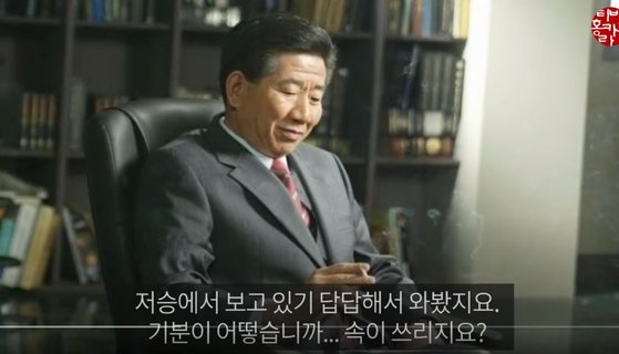 영상은 노 전 대통령과 홍 의원이 가상의 대화를 나누며 시작된다.
