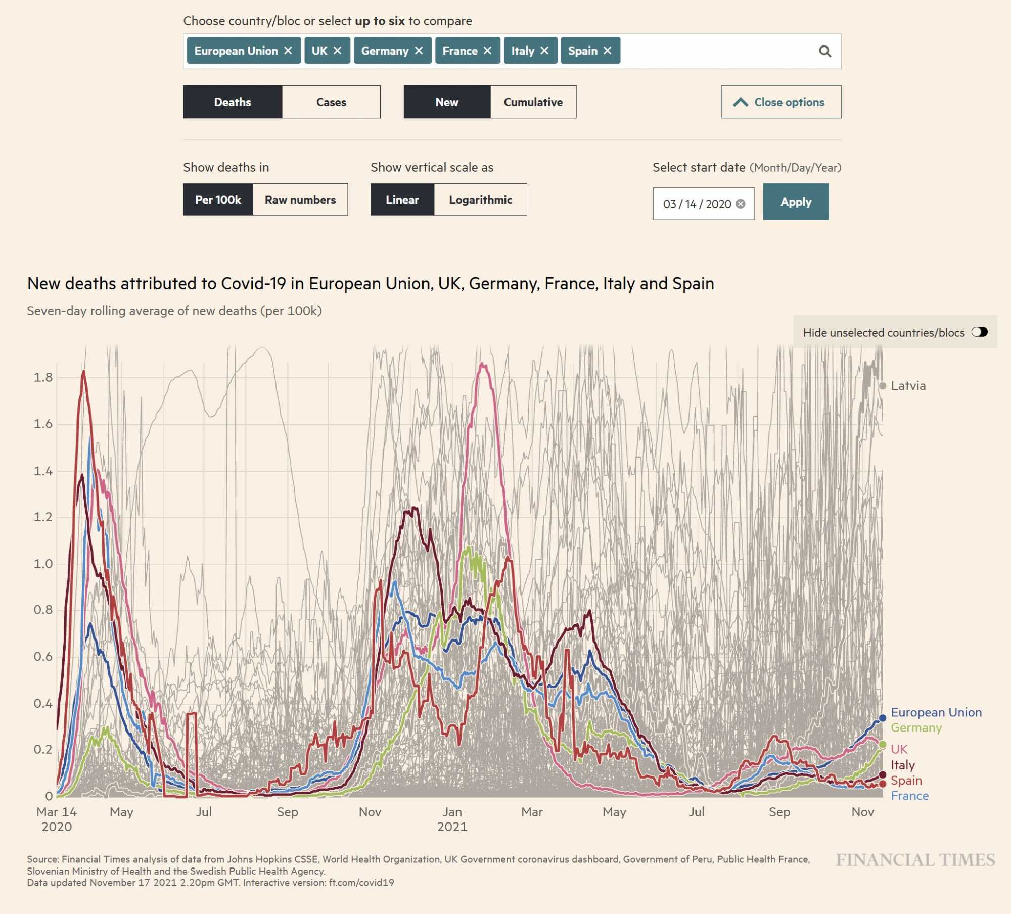 이미 동유럽 쪽은 금주 월요일에 한 달간의 락다운이 끝난 곳도 있는데, 서유럽 쪽과 미국은 슬슬 작년 겨울 비슷한 조짐이 나타나서 우려가 생기고 있습니다. 뉴욕 등 미국 동부의 경우 아직 사망자 증가 단계는 아닌 것 같습니다.
