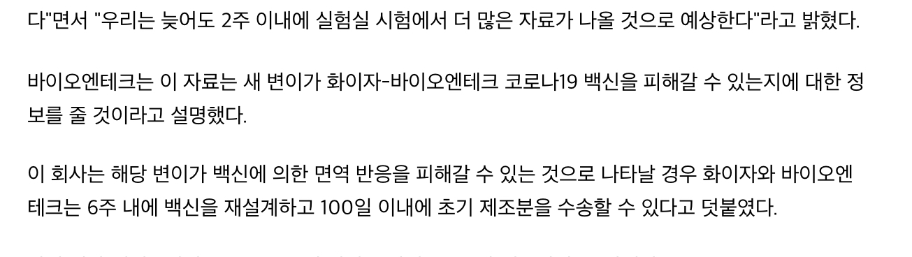 https://www.yna.co.kr/view/AKR20211126155052085 *종합2보로 수정했습니다. https://www.yna.co.kr/view/AKR20211127011700009 *종합기사로 수정했습니다. https://m.yna.co.kr/view/AKR20211127029100009 https://www.yna.co.kr/view/AKR20211127002300072 아직 추측이지만, 경구 복용약들도 새 변이 오미크론에는 효과가 더 적을 것으로 예상되고 있습니다. Winter is coming! 이군요. 격리 면제 확대 등 8월 말, 9월 초에 추가적으로 접종완료자 등에게 출입국 규제가 완화된 사이에 (사실상 관광 목적으로도) 유럽, 미국, 중동, 동남아 등으로 이미 출국했거나 다녀온 사람들도 있는데, 기존 확산 추세에 유행 속도가 델타보다 빠른 것으로 보이는 새 변이가 유행하면, 다시 출입국이 전반적으로 또 어려워질 수도 있을 것 같습니다. 새 변이 유행에 따른 수요 감소 우려에 유가도 급락하고, 주식 외에 환율, 채권, 비트코인 등도 출렁거리고 있습니다. WHO에서는 새 변이를 이해하는데 몇 주가 걸릴 것이라고 했고, 소셜 미디어에서 소위 뉴;Nu라고 변이 이름을 이미 붙여서 부르기도 하는데, 아직 공식적으로 변이의 그리스식 이름이 명명되지는 않았습니다. => 오미크론으로 정했습니다. 우리나라도 원래는 오늘 중요한 방역 변화를 발표할 예정이었지만, 이런저런 어른들의 사정(?)으로 29일로 연기되었습니다. https://www.yna.co.kr/view/AKR20211126070000530