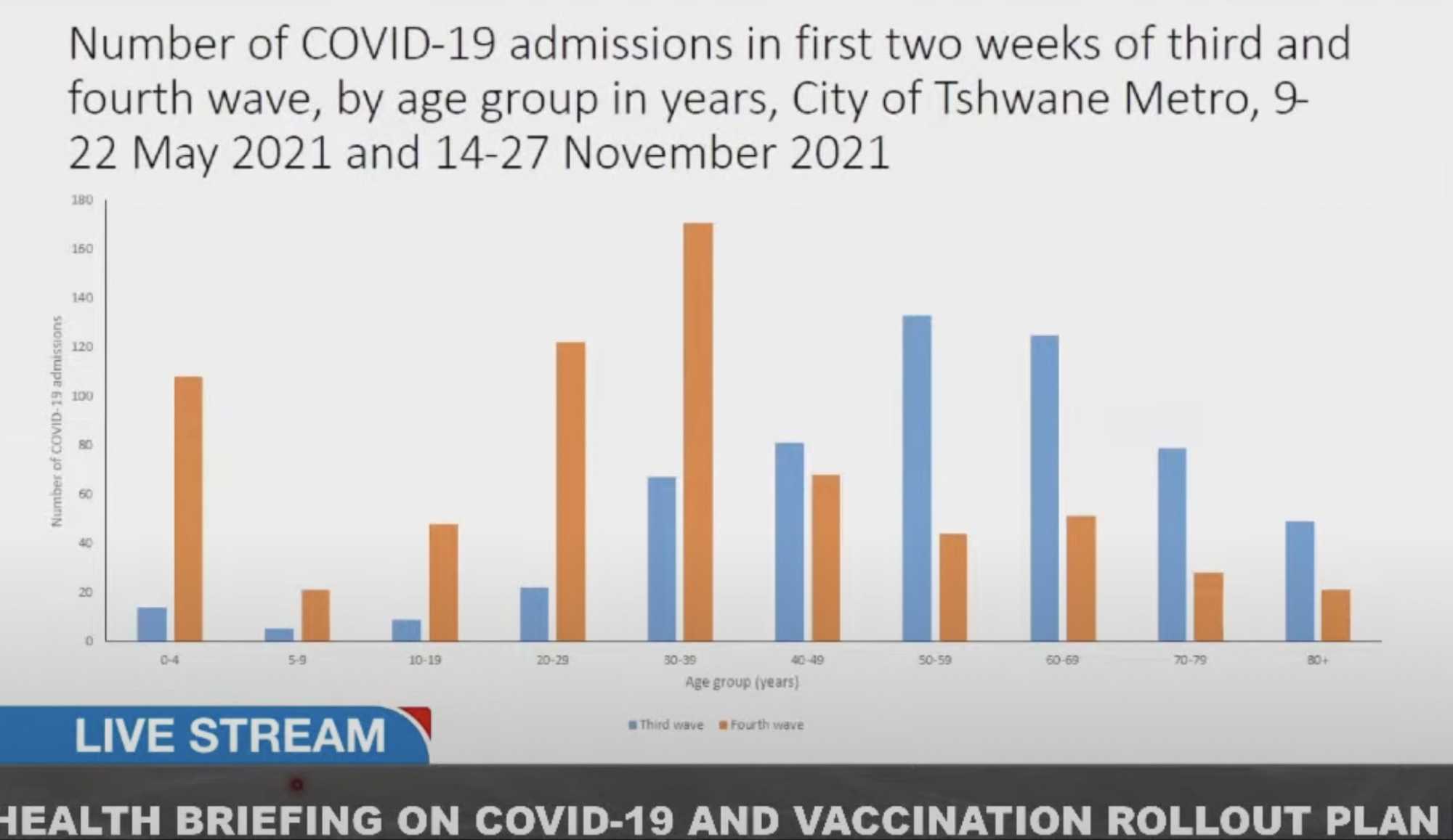 오미크론 변이 휩쓸고 있는 남아공 지방의 [입원]현황 보면 40세 기준으로 델타와 추이가 완전히 반대가 되었는데, 특히 상대적으로도 절대적으로도 많은 수가 영유아 입니다. 30대-20대 다음이에요.