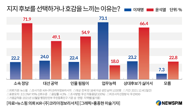 이재명은 업무능력에 지지이유가 몰빵된 것도 특징.