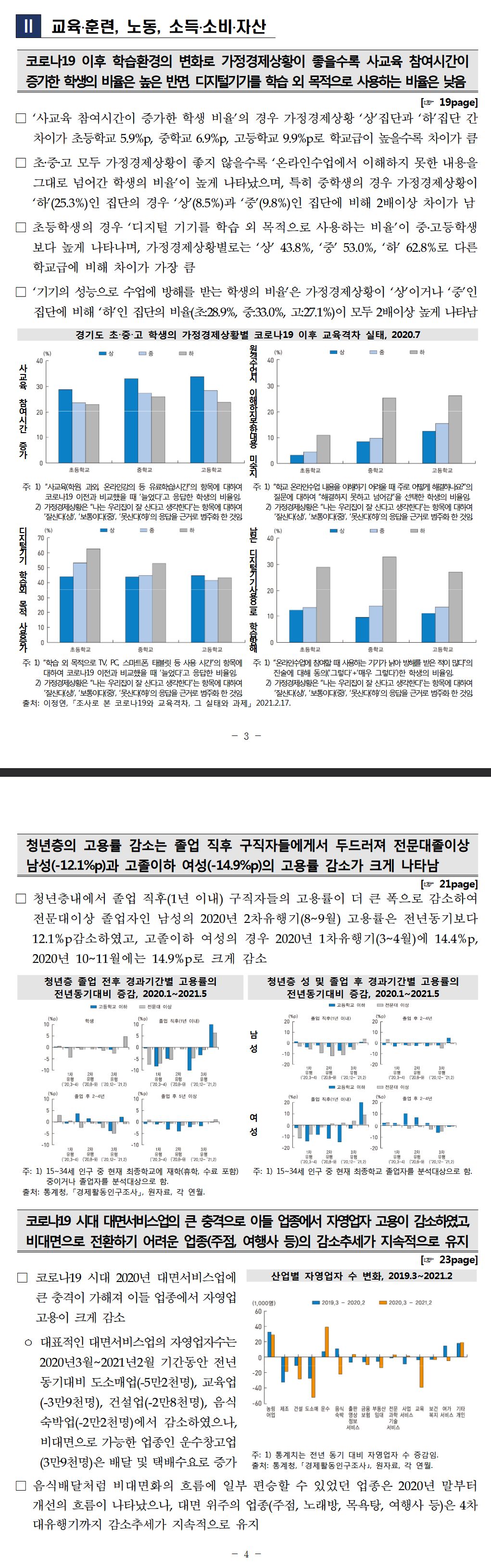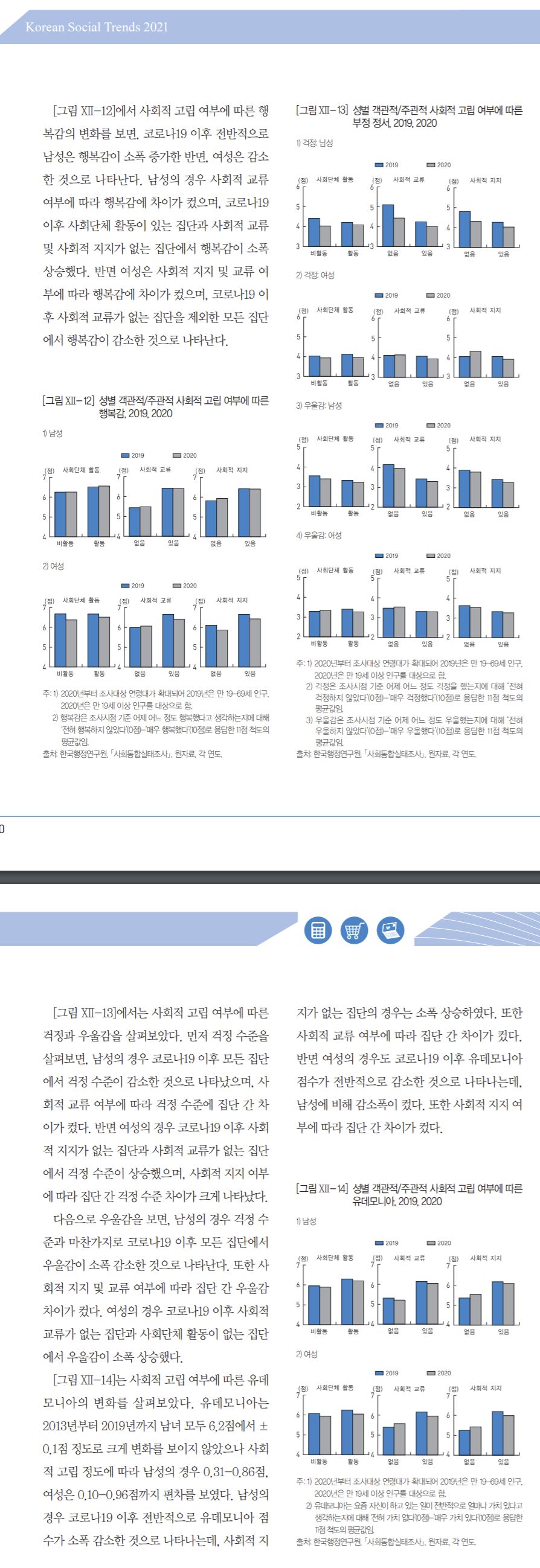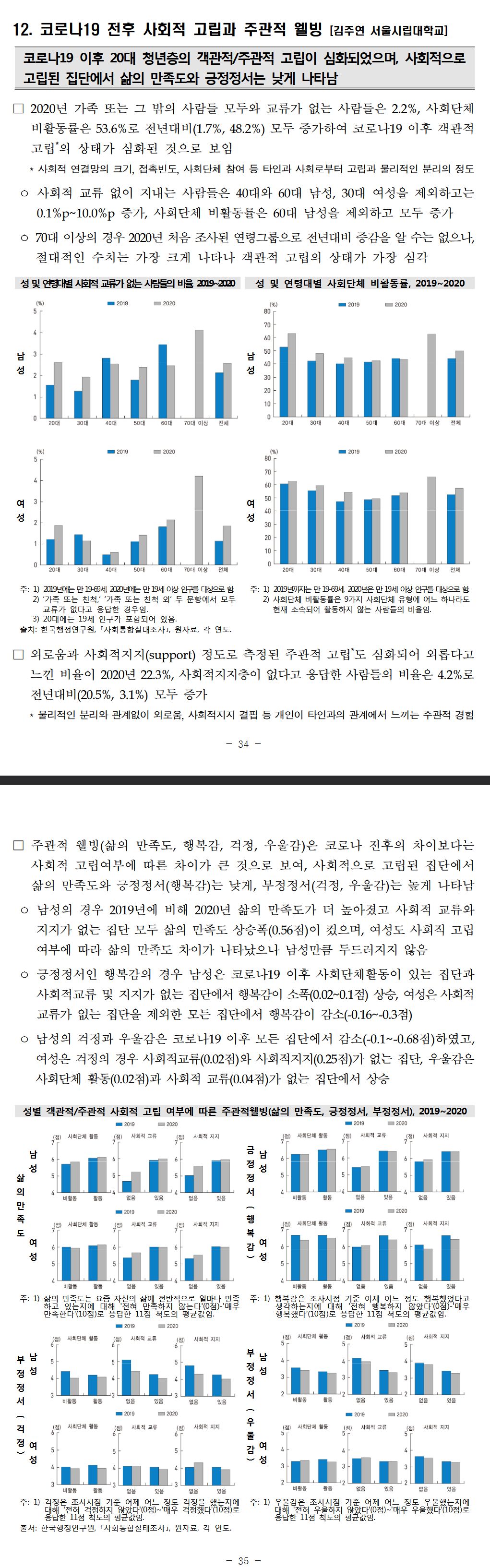 조금 단순화 하면 정서적 웰빙은 남성의 경우 코비드 이전보다 전반적으로 나아진 반면 여성은 개선지표와 악화지표가 엇갈리는데
