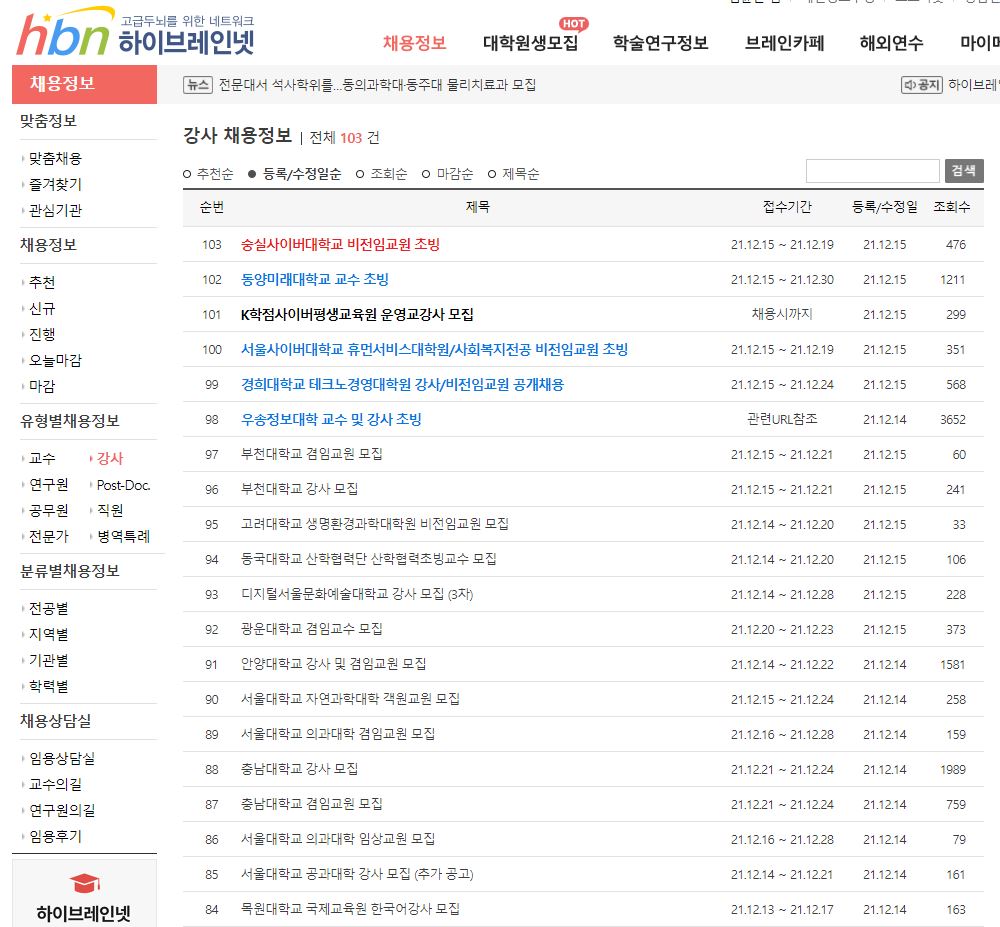 - 시간 강사는 전공 등을 보고 공개 채용하는 것이 아니고, 따라서 정식 교수를 뽑을 때처럼 자료를 보고 뽑는 것이 아니다.