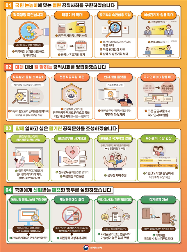 27258 사회2022 인혁처 :채용기회는 넓히고, 직무·성과 중심 인사관리 강화로 인사혁신을 넘어 공직혁신을 이끌어 나가겠습니다 7 한겨울 21/12/30 4229 0