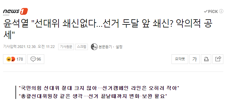 | Subject | 윤석열 선대위, 총괄본부장·신지예 일괄 사퇴 및 쇄신 절차 돌입 |
