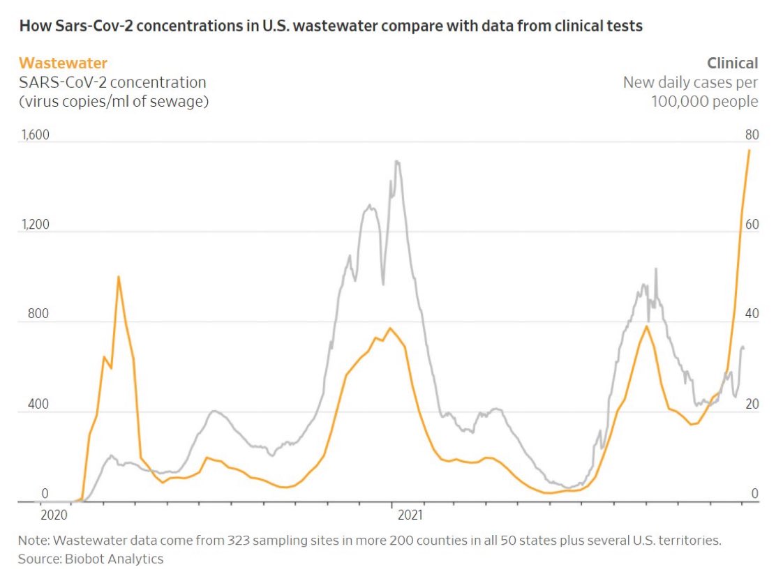 [하수 분석 전문업체 바이오봇 애널리틱스의 회장 뉴샤 가엘리는 "확진자가 화장실을 쓸 때마다 자신의 감염 정보가 담긴 오물을 변기를 통해 내려보낸다"면서 "이를 통해 수천명의 감염 정보가 하수에 모이게 된다"고 말했다. 그는 이어 "진단 검사를 할 수 없는 사람들도 볼일은 본다"면서 "하수 샘플 검사는 보건의료 체계에 의존하지 않는다"고 덧붙였다.]