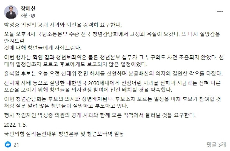 Subject   청년간담회 온다던 尹 스피커폰 인사…현장서 욕설나와