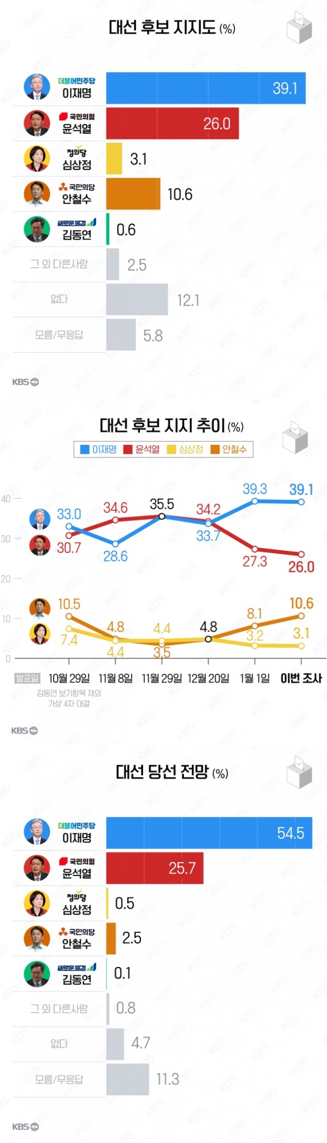 Subject   KBS 새해 첫 여론조사, 이재명 39.1% vs. 윤석열 26.0%