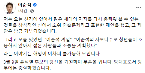 수습한다고 싸질러놓은 말이 '이준석계 청년들의 분탕질때문' 이었죠