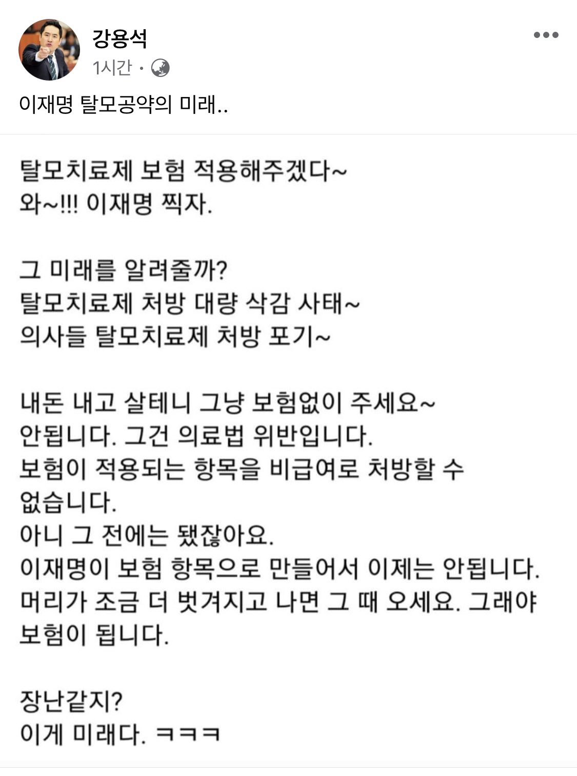 그 지체 높은 김윤 교수님이... 탈모 공약 때문에 MBC 까지 나와서 설명해야하는 현실이 참 ㅎㅎ