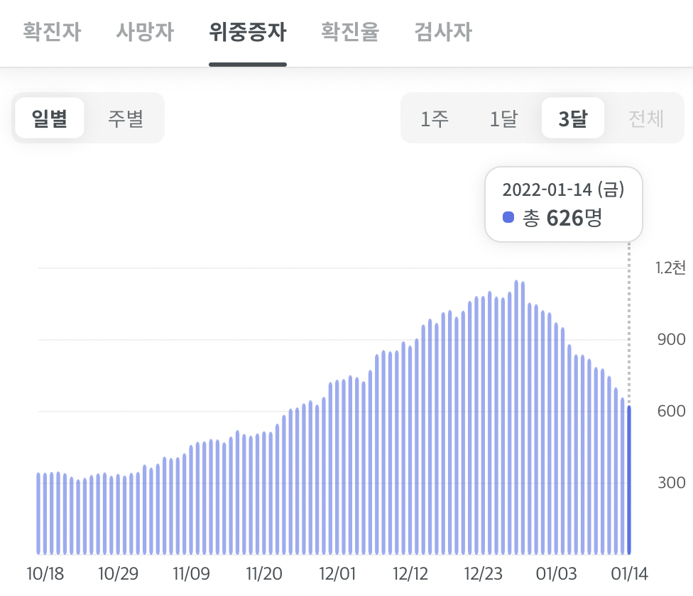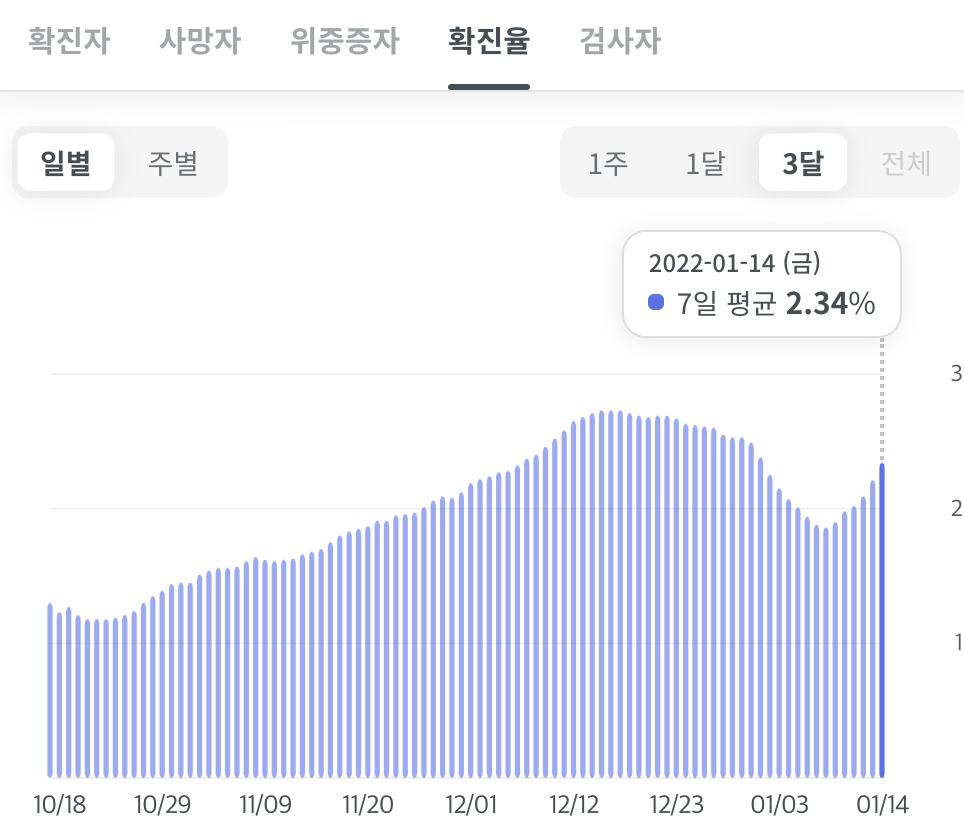 https://news.v.daum.net/v/20220115104333770 기사를 보면 잡혀가는구나 싶게 써놓았지만... 추이는 그래프로 보는 편이 좋습니다. 이후로 올라갈지 내려갈지는... 0